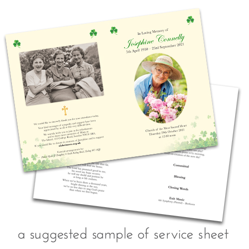 We will provide a proof back by email for you to view. Upon approval, we shall produce the finished order of services and deliver to the funeral directors the day before the service.